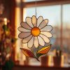 Peony Floral Suncatcher – Acrylic Window Hanging with Bee, Pearls & Soft Pink Blooms – Elegant Stained Glass Look Spring Decor